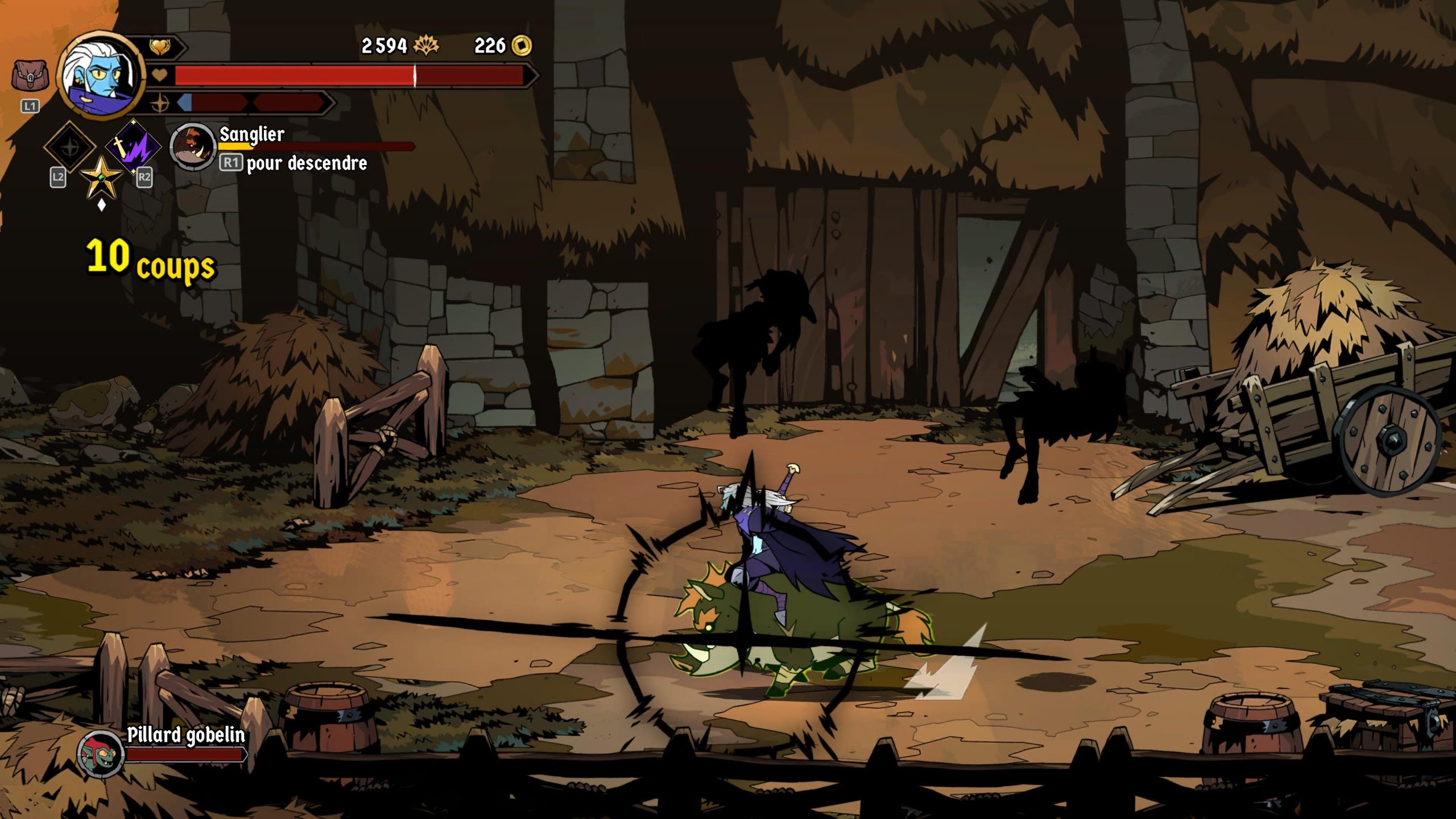 Les affrontements contre les boss constituent le cœur de la mise en scène. Véritables duels de rythme et de lecture, ils demandent d’observer les patterns, d’esquiver avec précision et de frapper au bon moment. Certains combats alternent entre phases au sol et attaques aériennes, ou s’enrichissent de pièges et de variations de terrain, exploitant la verticalité et la mobilité pour maintenir une tension constante.