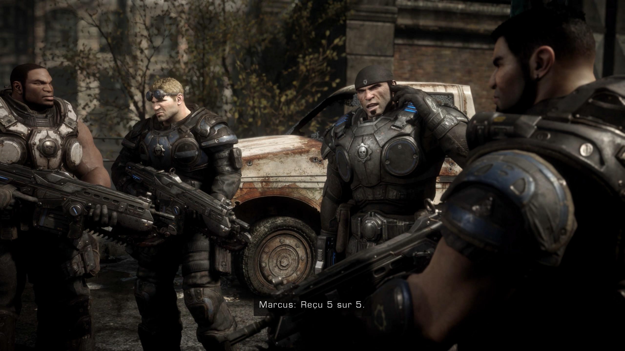 Gears of War Reloaded conserve la jouabilité signature de la série, centrée sur une mécanique de tir à la troisième personne où la couverture joue un rôle fondamental. Vous devrez constamment utiliser à bon escient les éléments du décor — murs, caisses, véhicules (parfois déplaçables) — pour éviter les tirs ennemis tout en attaquant. Le système de couverture est fluide, permettant de passer rapidement d’une position à une autre. Vous pourrez aussi esquiver ou attaquer au corps à corps avec la fameuse tronçonneuse intégrée au fusil d’assaut.